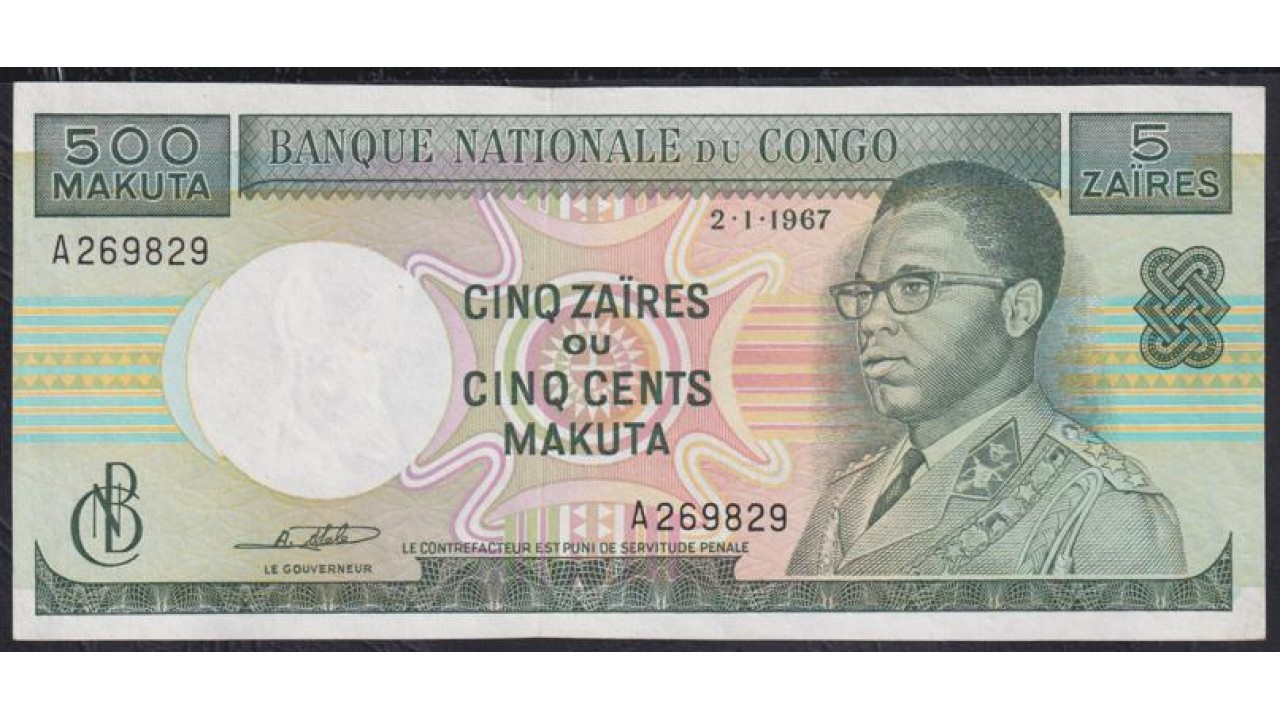 • Конго 500 макута (=5 Заир) 2-1-1967 год (CONGO Republic / Congo-Kinshasa) 500 Makuta (= 5 Zaïre)) P 13a: UNC