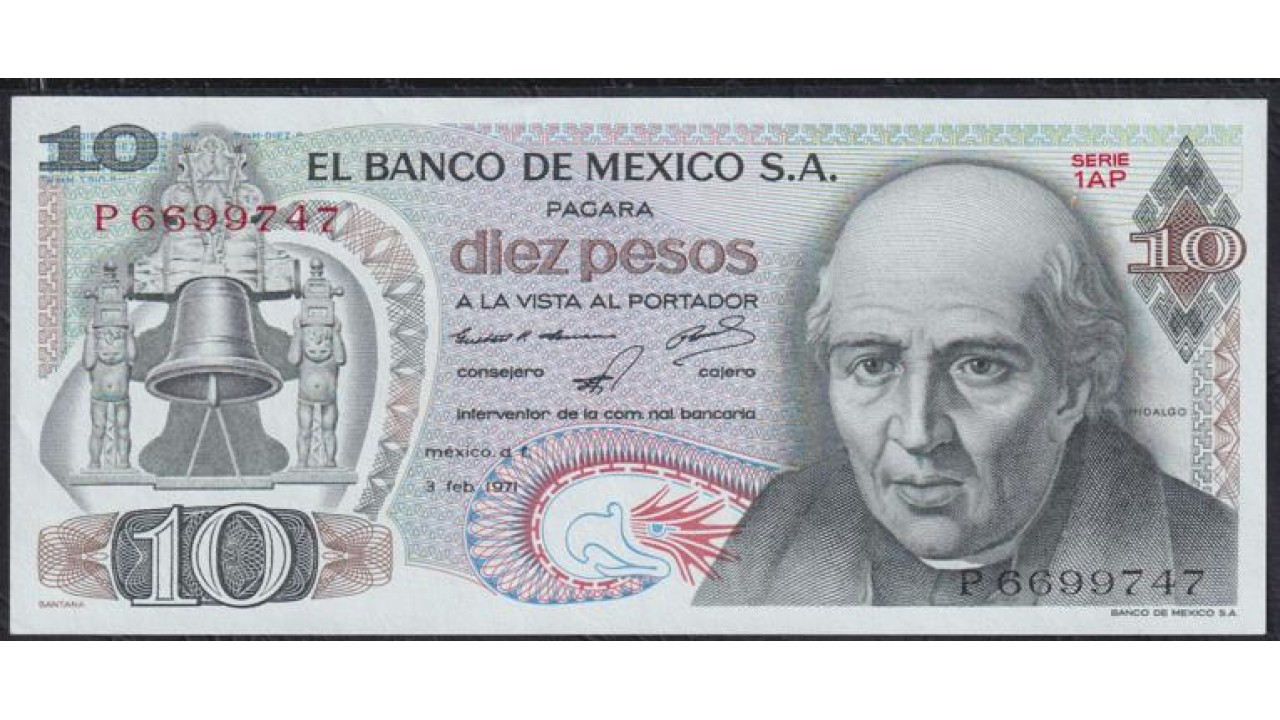 • Мексика 10 песо 1971 года, Серия 1AP (MEXICO 10 Pesos 1971) P 63d(1) : UNC