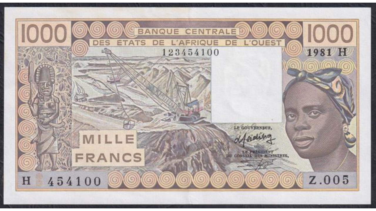 • Нигер 1000 франков 1981 года, 123454100, Номер почти лесенка! Нечастые (NIGER 1000 francs 1981) P 607Hb: XF/aUNC