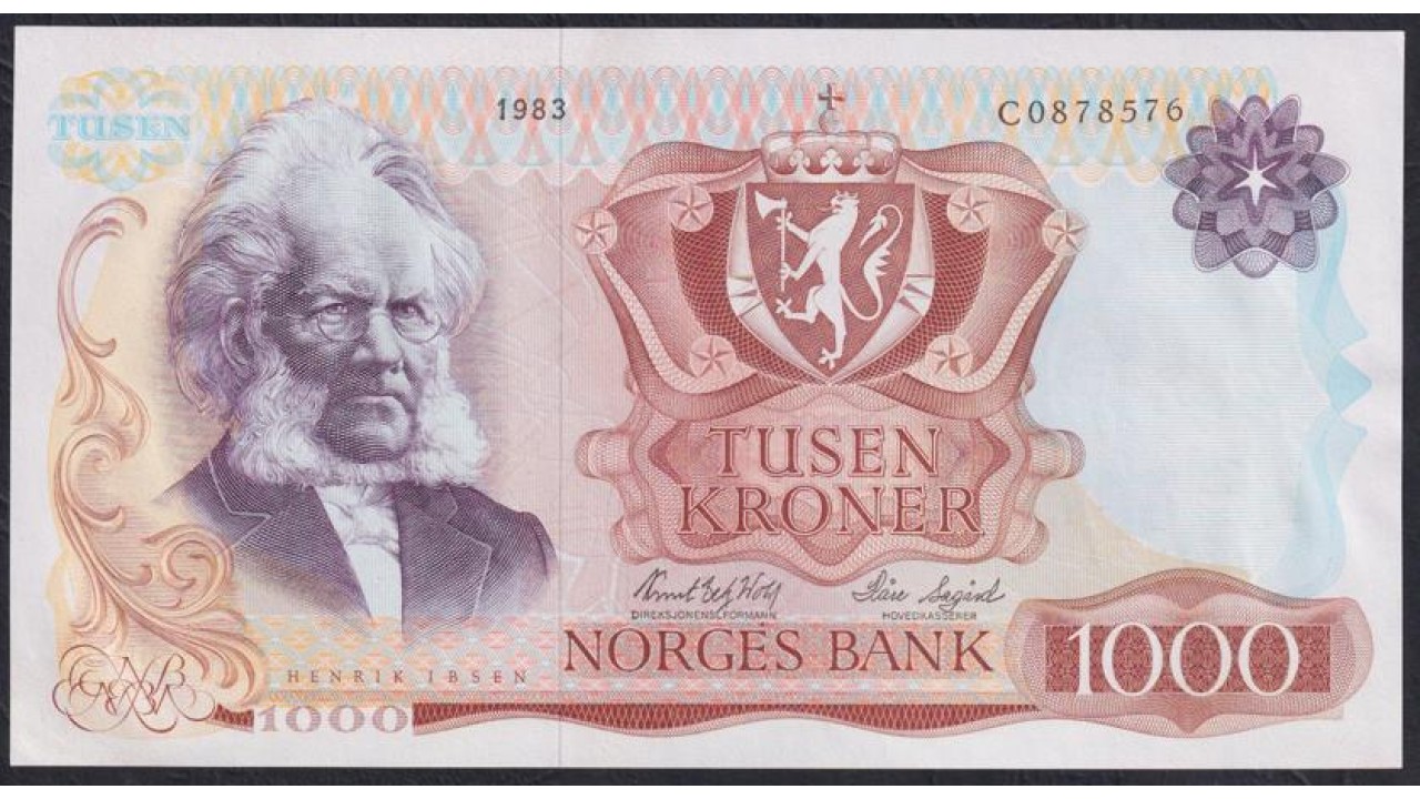 Норвегия 1000 крон 1983 год, C 0878576 (NORWAY 1000 Kroner 1983) P 40b: UNC