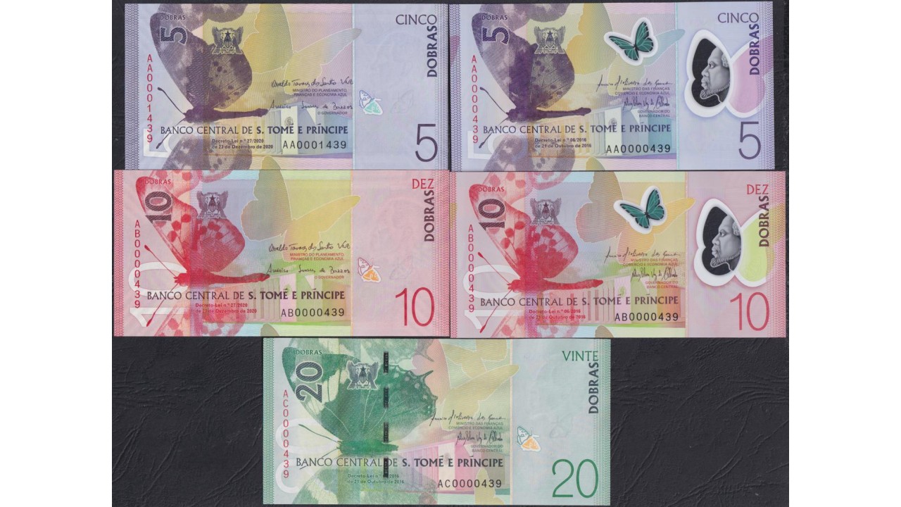 Сан-Томе и Принсипи комплект 2016 года, 5, 5, 10, 10, 20 , 50, 100, 200 и самая редкая 200 добра (Saint Thomas and Prince 2016 issue full set) P 70-75, P W77, P W78, PW81: UNC