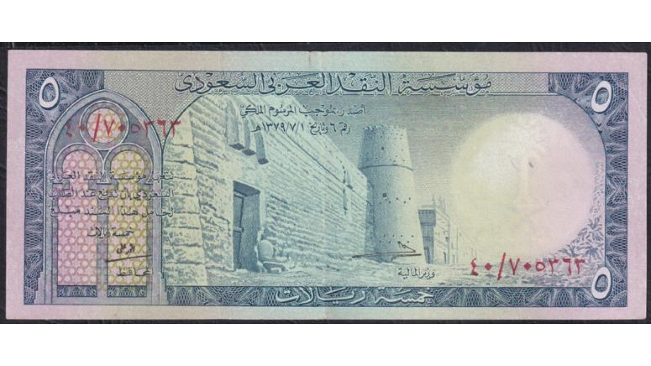• Саудовская Аравия 10 риалов  AH 1379 (1961) (Saudi Arabia 10 riyals AH 1379 (1961)) P 7a: VF/XF