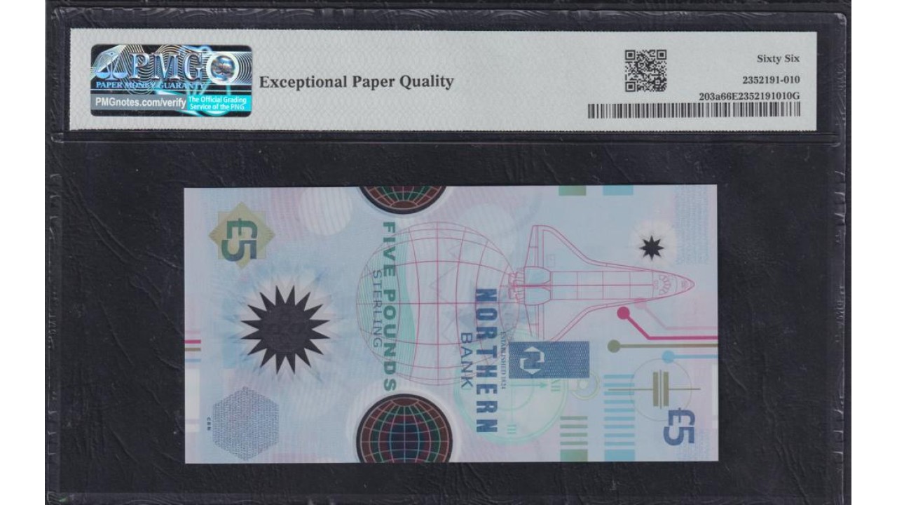 • Северная Ирландия 5 фунтов 1999 года, MM 1642379 (Northen Ireland 5 Pounds 1999, mm 1642379) P 203a : PMG 66 Gem Uncirculated EPQ