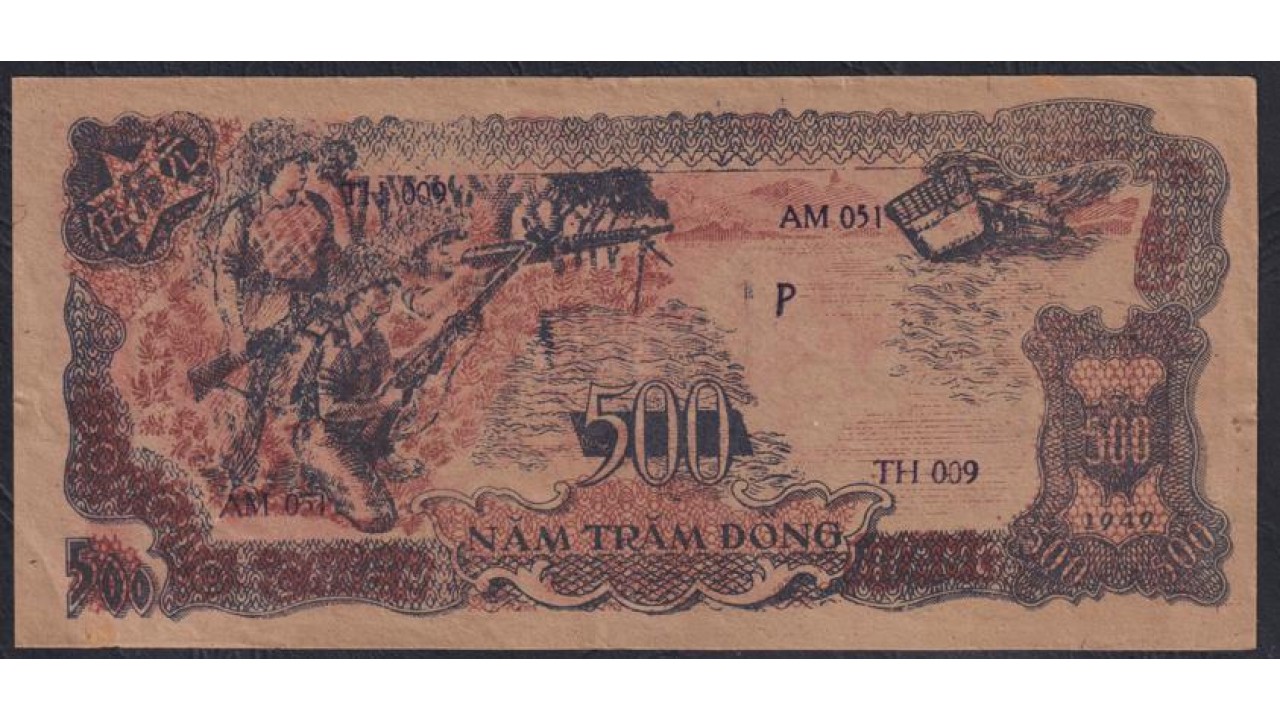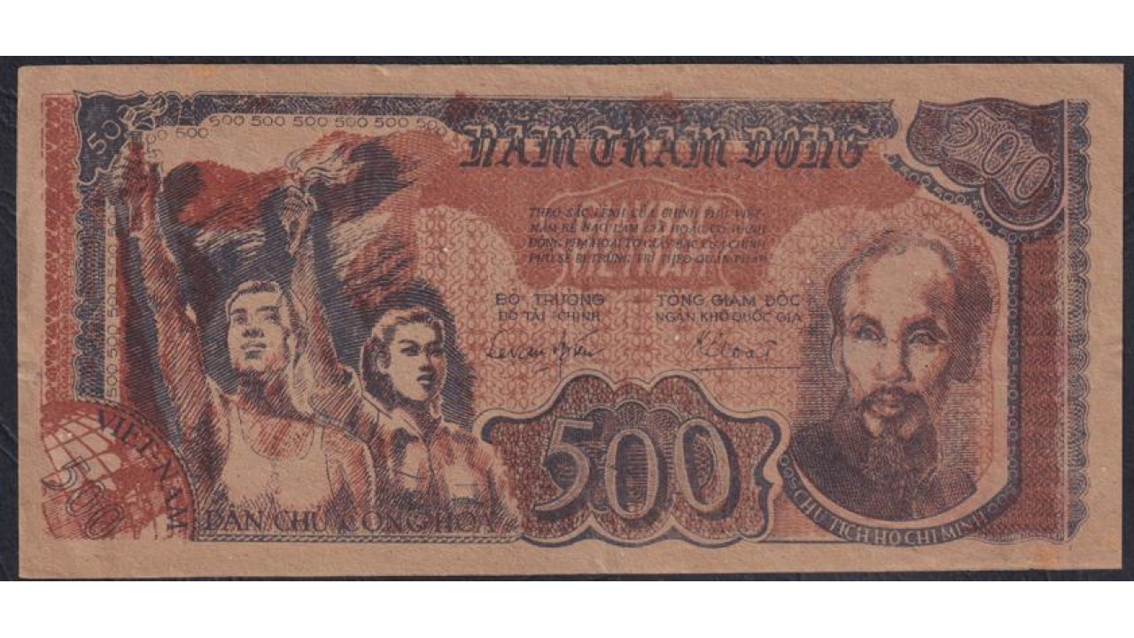 • Северный Вьетнам 500 донг 1949 год, В/З Круг со Звездой (North Vietnam 500 dong 1949, watermark: circle with star) P 31b: aUNC