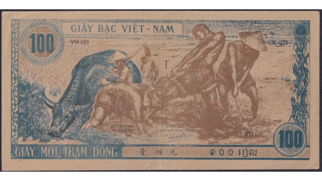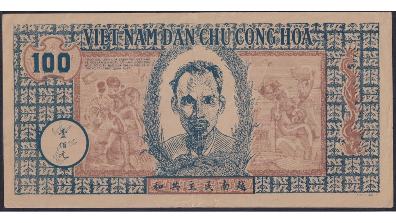 Северный Вьетнам 100 донг ND(1947), Без В/З (North Vietnam 100 dong ND(1947) without watermark ) P 12a: XF/aUNC