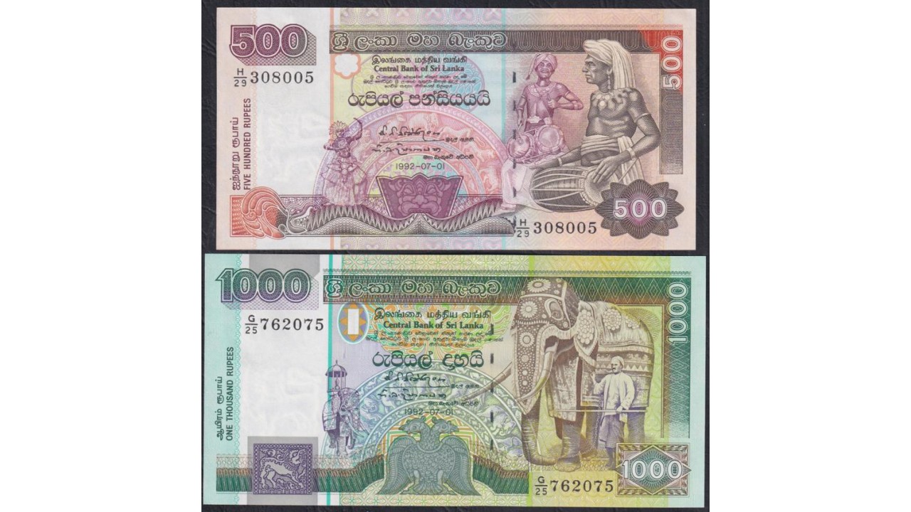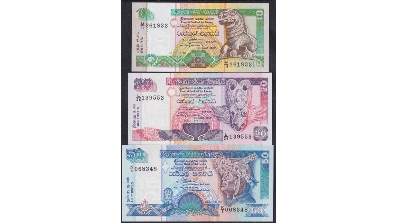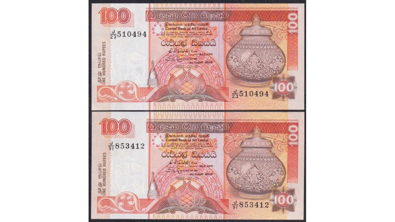 Шри Ланка 10, 20, 50,100, 100, 500 и 1000 рупий 1992 года, РЕДКИЙ КОМПЛЕКТ (Sri Lanka 100 rupees 1992) P 102b, 103b, 104b, 105b, 105A? 106b, 107b: UNC