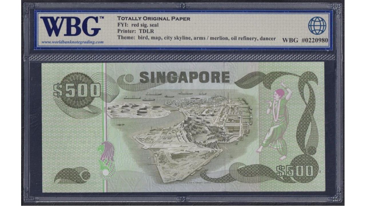 Сингапур 500 долларов б\д (1977) А/7 421951, Редкие в состоянии UNC (Singapore 500 dollars ND (1978)) P 15a: UNC WBG 65 Uncirculated Gem TOP