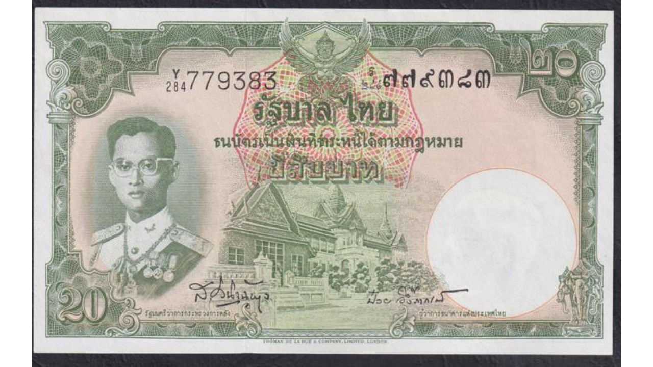 • Таиланд 20 бат б\д (1955 год) (Thailand 20 bat ND (1955 year)) P 77d(4) : Unc