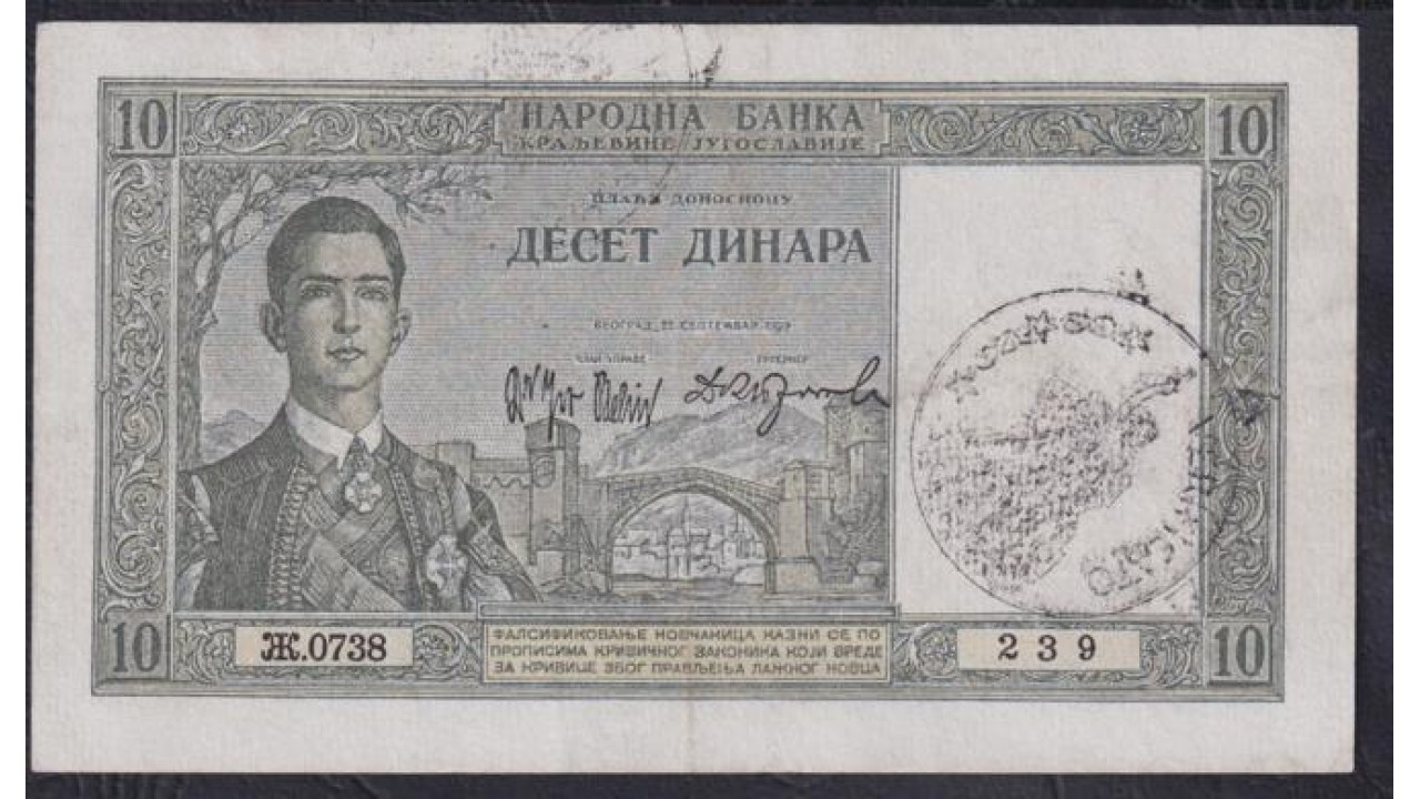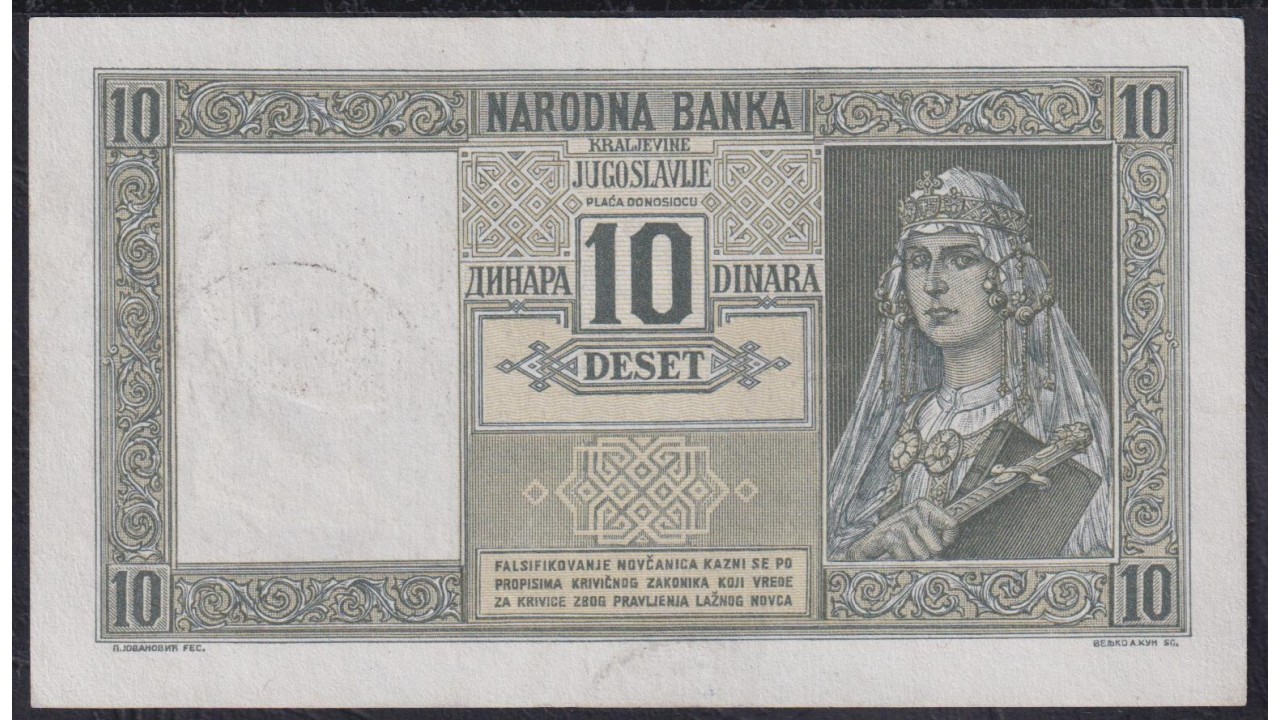 • Югославия 10 динар 1939 (Yugoslavia 10 dinars 1939) P 35: XF/aUNC